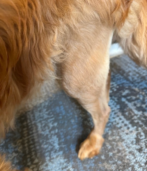 Like Abby, she’s another dog that needed to undergo Tibial Tuberosity Advancement (TTA) surgery to stabilize her knee joint by eliminating the need for the cranial cruciate ligament. She’s doing great and is rehabbing at the DVGRR Sanctuary.
