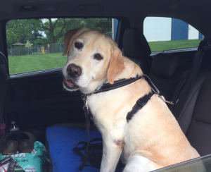 Getting in and out of the car can be very scary for your dog at first. Because of your dog’s inexperience, do not expect them to immediately trust jumping into a car. You will most likely have to assist your dog into the car by lifting the dog. If they are afraid of approaching the car, you will first need to work on desensitizing them gradually to being near the car. For more help, research online articles on desensitization and counterconditioning by one of our recommended experts at the end of “Continuing the Journey.”
