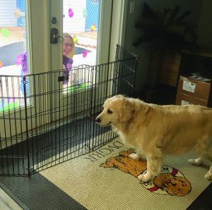 We require physically fenced yards for most of these types of dogs. So what should you do when you want to use a door that leads to an unfenced area? You may be leaving for work, opening the door for a guest or delivery person, or simply going out to get the mail. Most front doors are used for this purpose. You could purchase an x-pen or wide gate and surround your front door with it so that when you leave, you enter the x-pen and close it behind you – then leave through your door. You could purchase a baby gate and gate the dog in a room away from the door – as long as your dog can’t/won’t jump the gate or knock it over! If your dog likes a crate, you could crate the dog before exiting. You could also choose to make those particular doors off limits. We have had adopters post brightly colored signs on those doors warning guests to be cautious when arriving and to enter swiftly instead of holding the door open for a lengthy period of time. If your dog is comfortable with the leash, clip a leash to them before opening the door for a guest. Remember that skittish dogs are very quick and will bolt out before you even realize that it happened. Having your home prepared before bringing your dog home will help manage this situation.