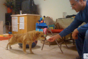 • You can then have the dog target objects with their nose such as a brush, the dog bowl, or other objects that they may need reassurance to not be a threat.