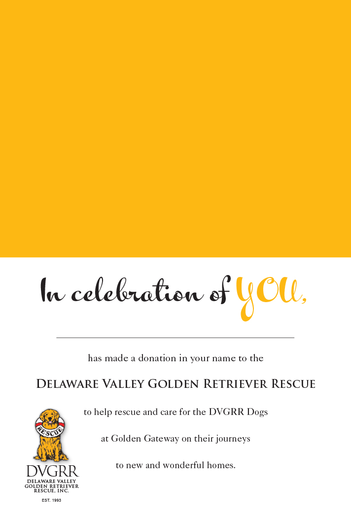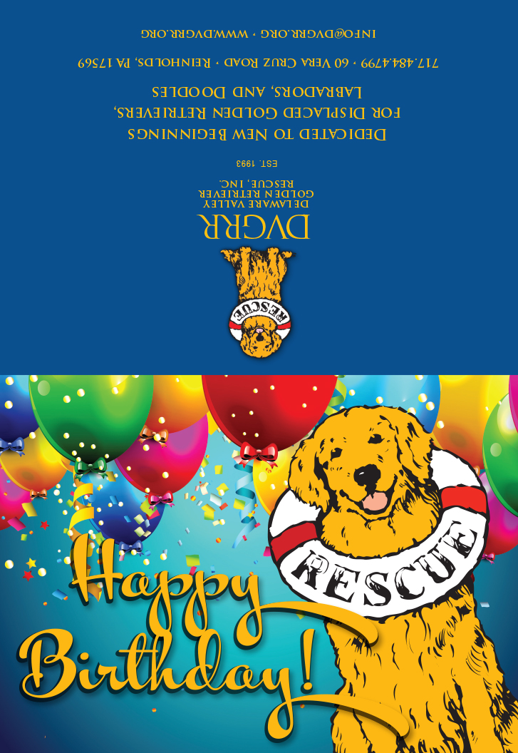 A birthday wish becomes especially meaningful when it helps homeless Golden Retrievers. We have designed this lovely card that we will send on your behalf for a donation of $25.00 or more. We will hand write the card and envelope, then drop in the mail for a quick delivery to the recipient of your thoughtful wishes.