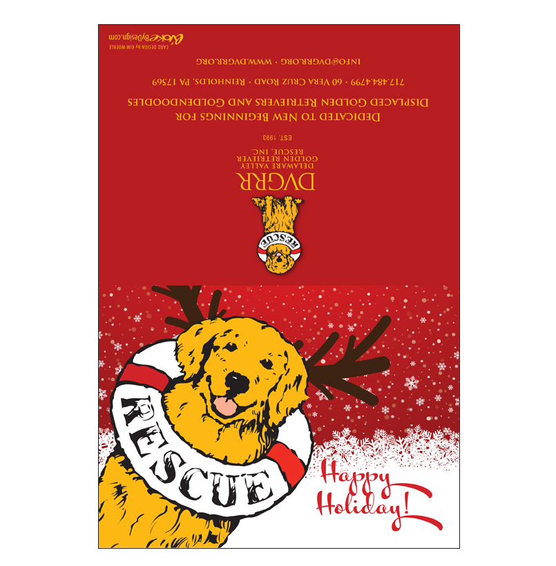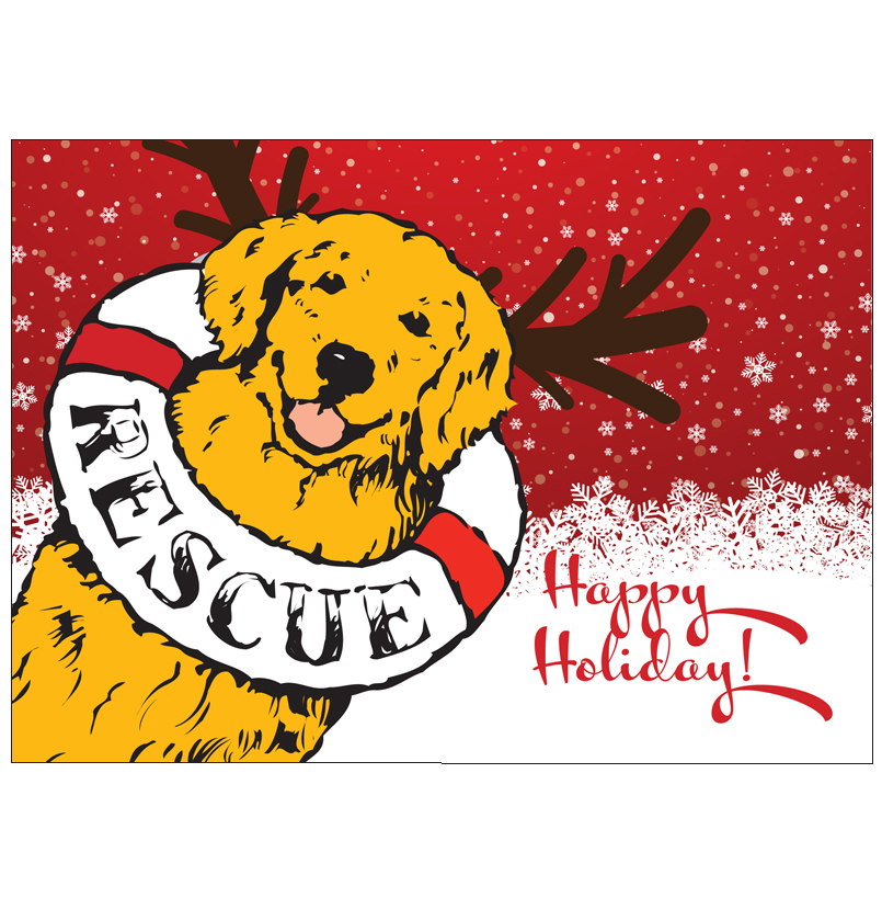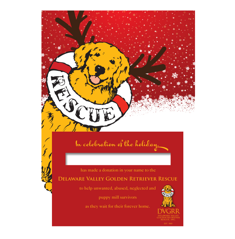 A holiday gift becomes especially meaningful when it helps a homeless Golden Retriever, Goldendoodle, Lab, or Golden mix. We have designed this lovely card that we will send on your behalf for a donation of $25.00 or more. We will hand write the card and envelope, then drop in the mail for a quick delivery to the recipient of your thoughtful wishes.